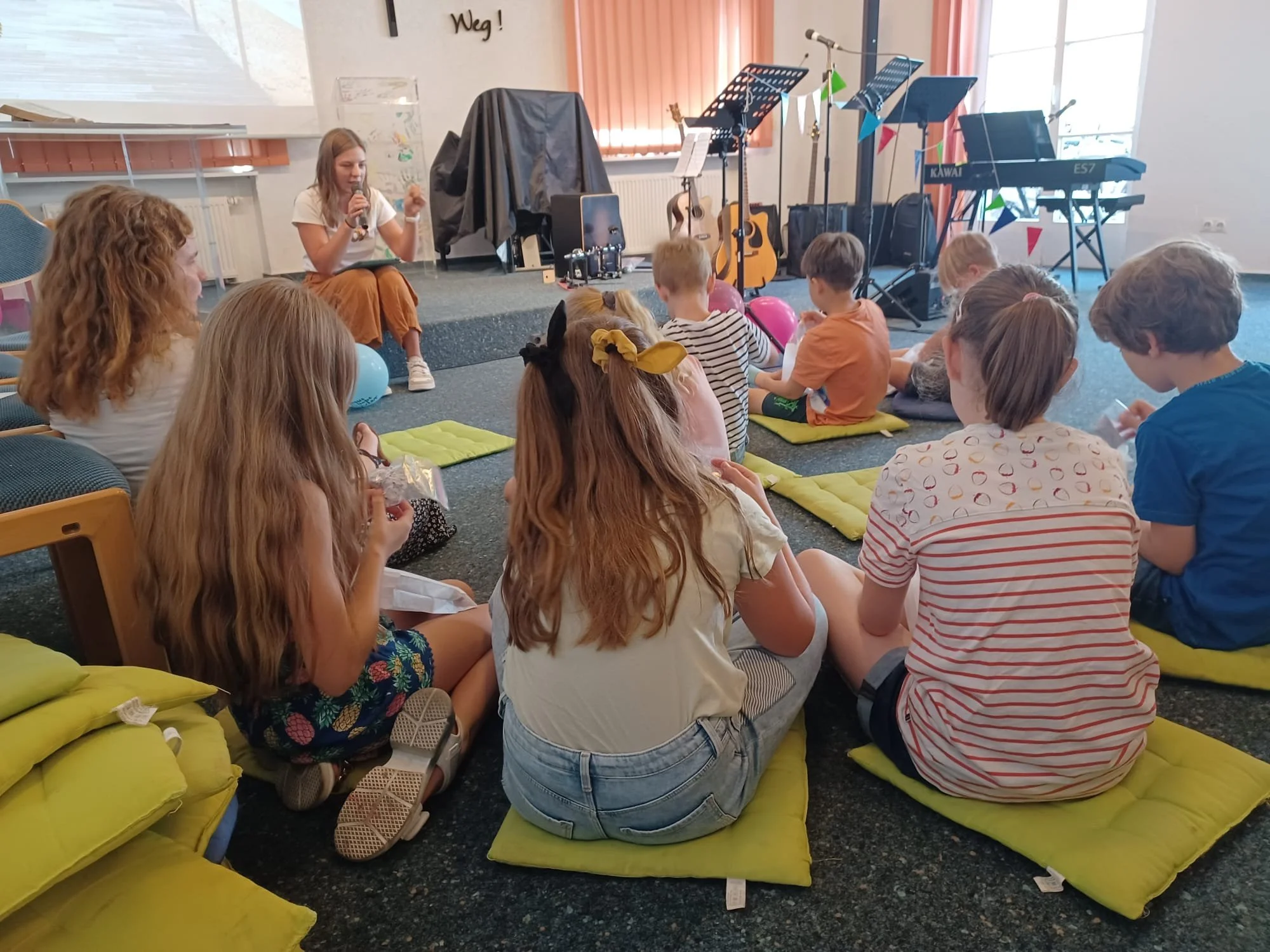 Kinder und Familien sind uns super wichtig. Deshalb gibt es jede Woche parallel zum Gottesdienst auch einen Kindergottesdienst. Dadurch haben die Kids cooles Programm, das ihrem Alter entspricht und die Eltern können ganz entspannt im Gottesdienst sein.